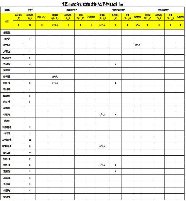 凌源市2022年8月份扶贫对象动态调整名单公告