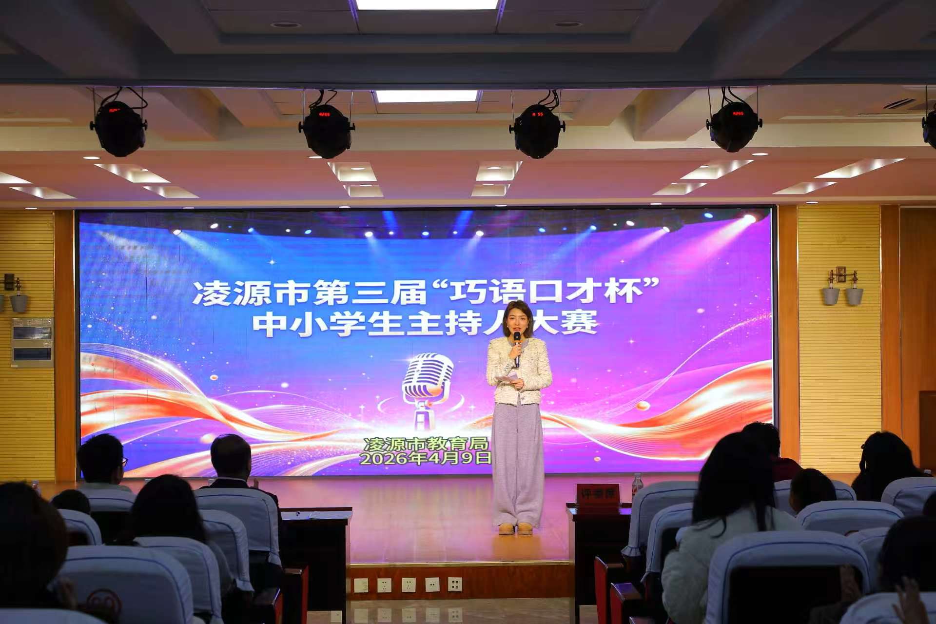 春风送暖,艺韵飞扬。4月9日,凌源市第三届“巧语口才杯”中小学生主持人大赛圆满落幕。本次大赛由市教育局主办,紧紧围绕立德树人根本任务,全面践行“五育并举”教育方针,旨在推进校园美育建设,为全市青少年搭建语言展示与成长历练的优质平台。